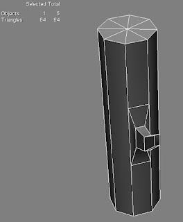 Tiene un total de 184 triángulos. Para la forma tan sencilla que me salió, creo que es una pasada tener tantos triángulos (comparado con la antorcha que tiene 188). Por lo tanto me he puesto a quitar subdivisiones innecesarias y este ha sido el resultado:
